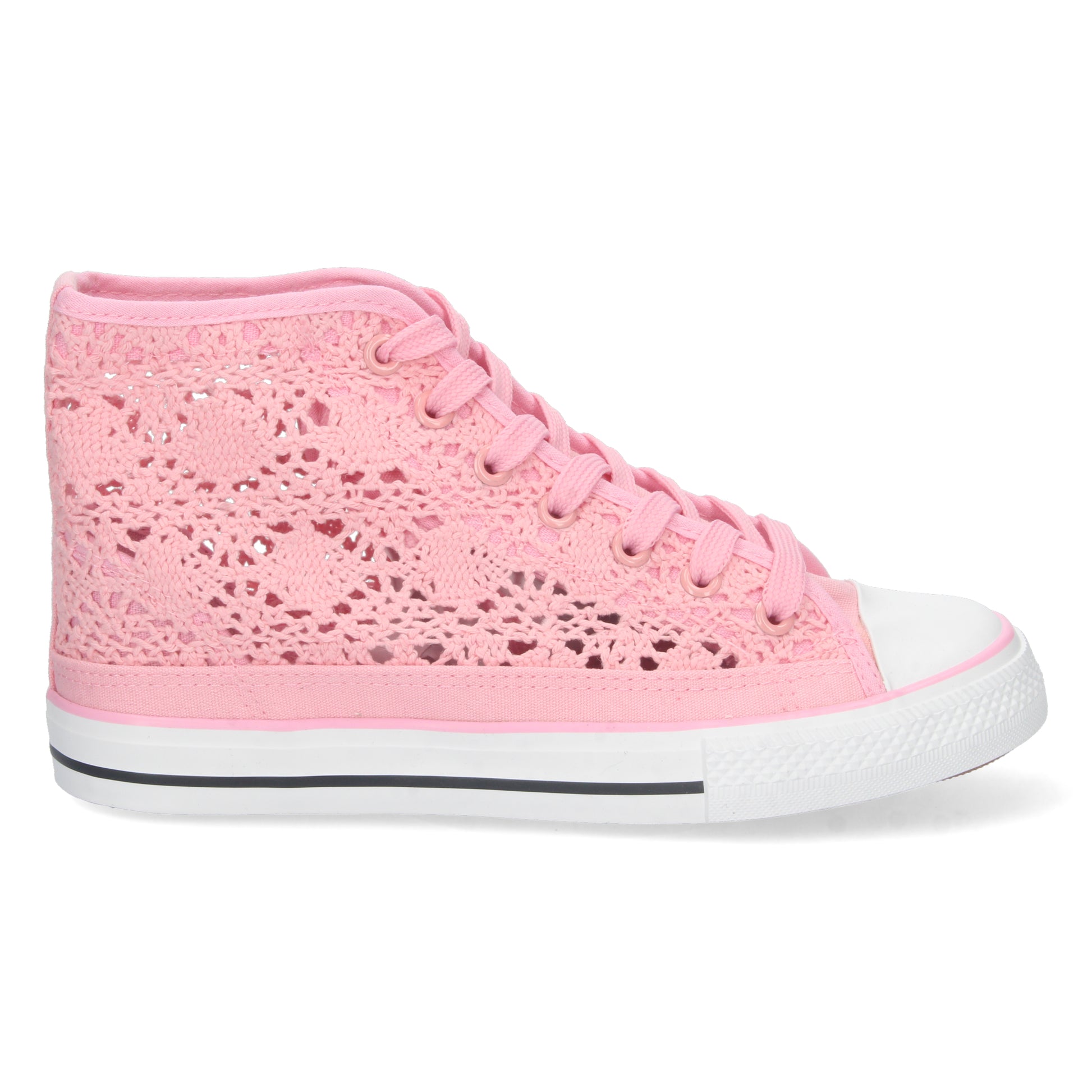 Zapatilla Abotinada para Mujer Comoda con Material Bordado y Calado Transpirable y Cierre de Cordones