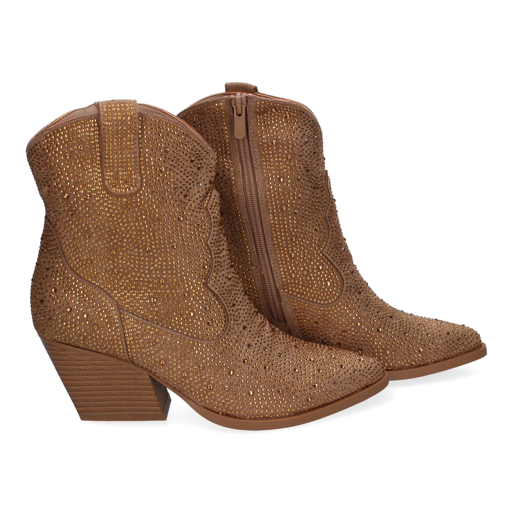 Botines de Tacón Cubano para Mujer Adornos Brillantes Diseño Comodo y Elegante y Cierre de Cremallera Lateral.