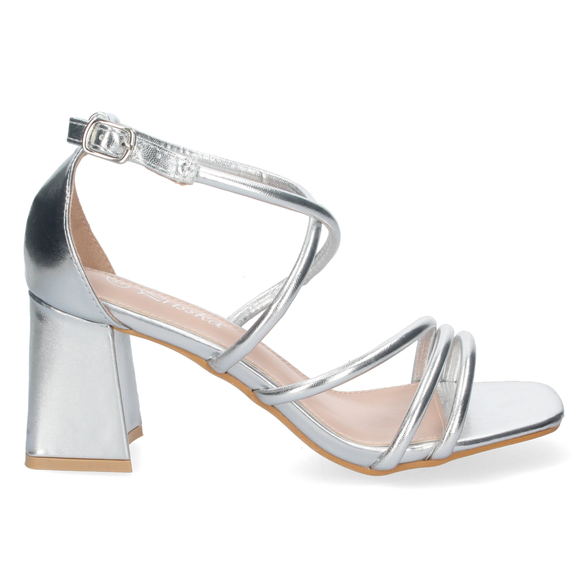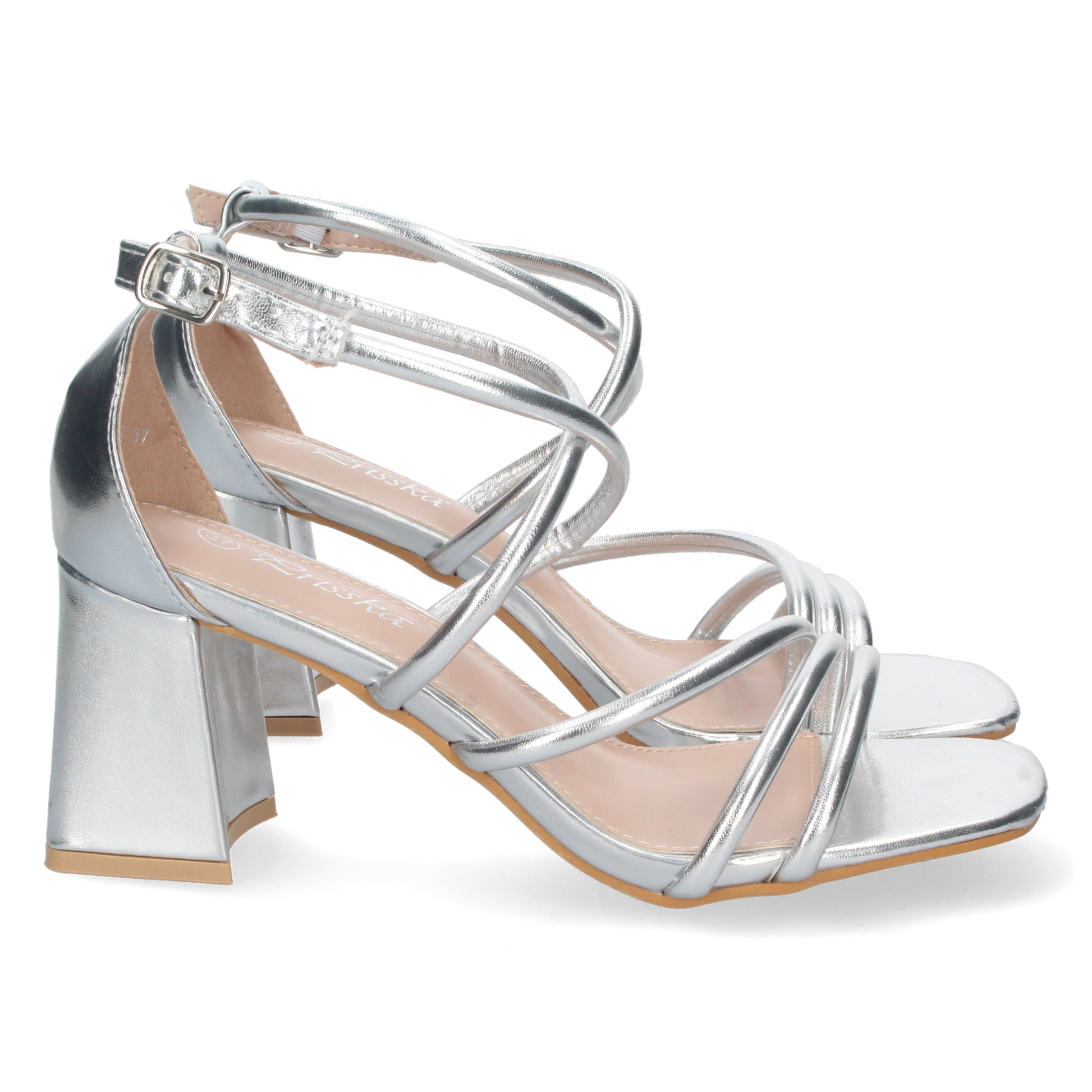 Sandalia de Tacon para Mujer Comodo con Tiras Finas Cruzadas Talon Cerrado y Cierre de Hebilla
