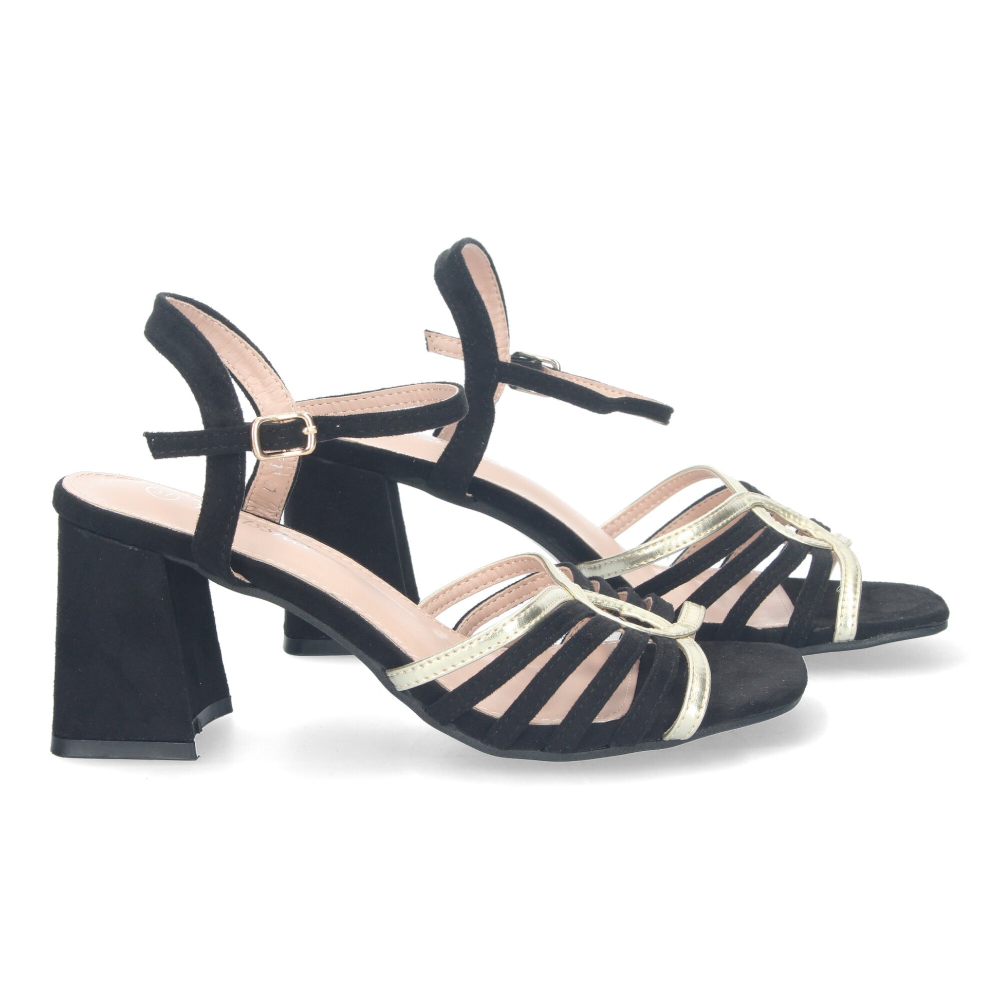 Sandalia de Tacón para Mujer Cómodas con Adorno en la Pala Cierre de Hebilla Ideal para Eventos.