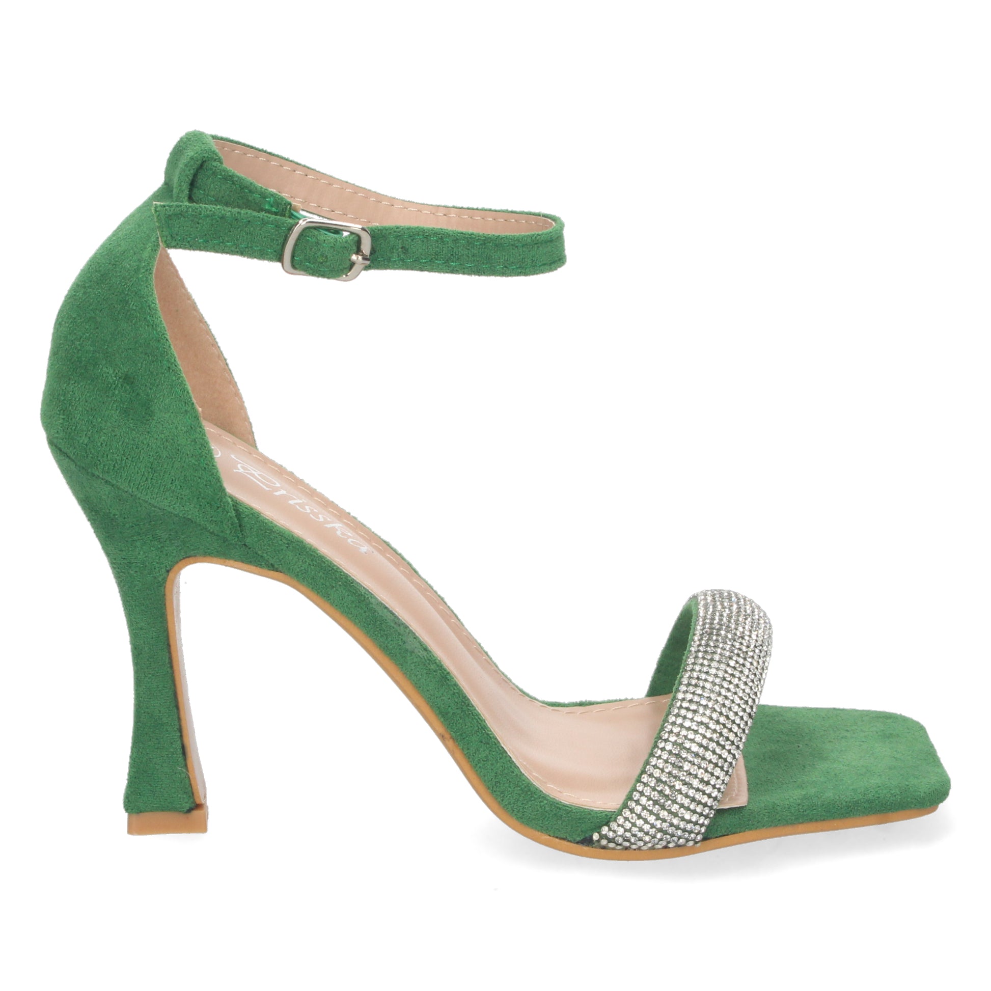 Sandalia de Tacón para Mujer Comoda Pala con Strass y Cierre de Hebilla Otoño Invierno 2022