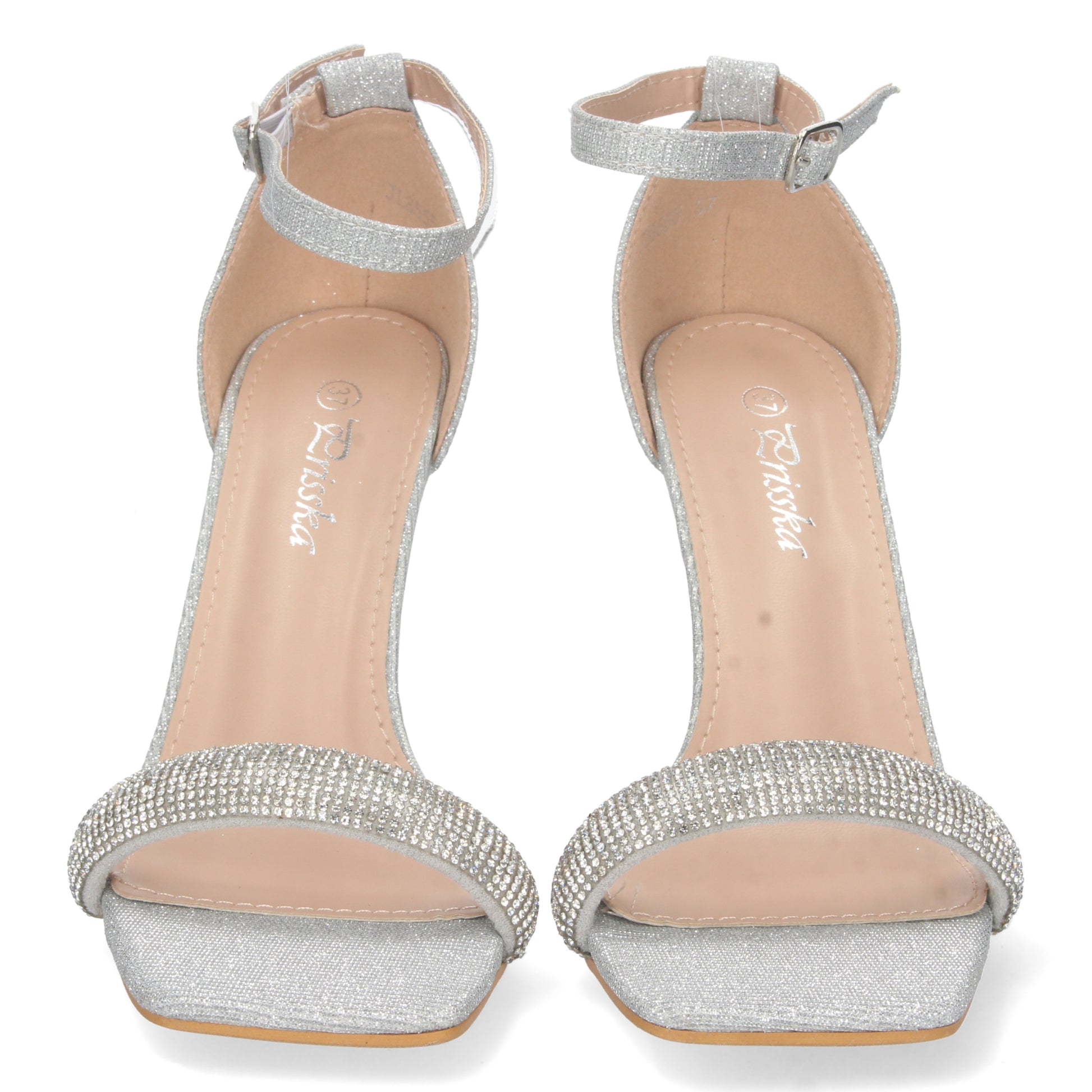 Sandalia de Tacon para Mujer Comoda de Material Brillante Pala con Strass y Cierre de Hebilla Otoño Invierno 2022