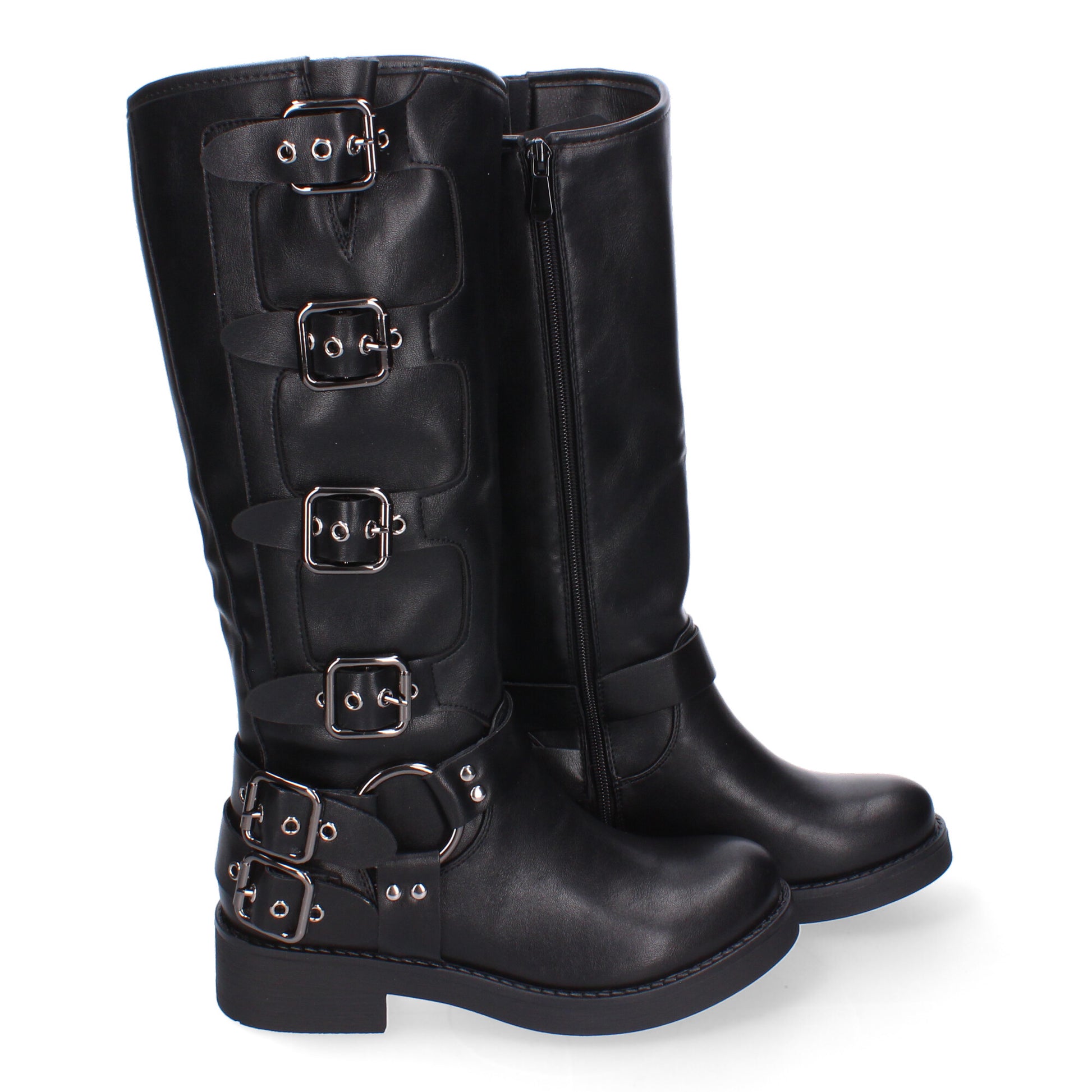 Botas de Mujer Comodas y Elegantes con Multiples Hebillas Diseño de Punta Redonda y Cierre de Cremallera.