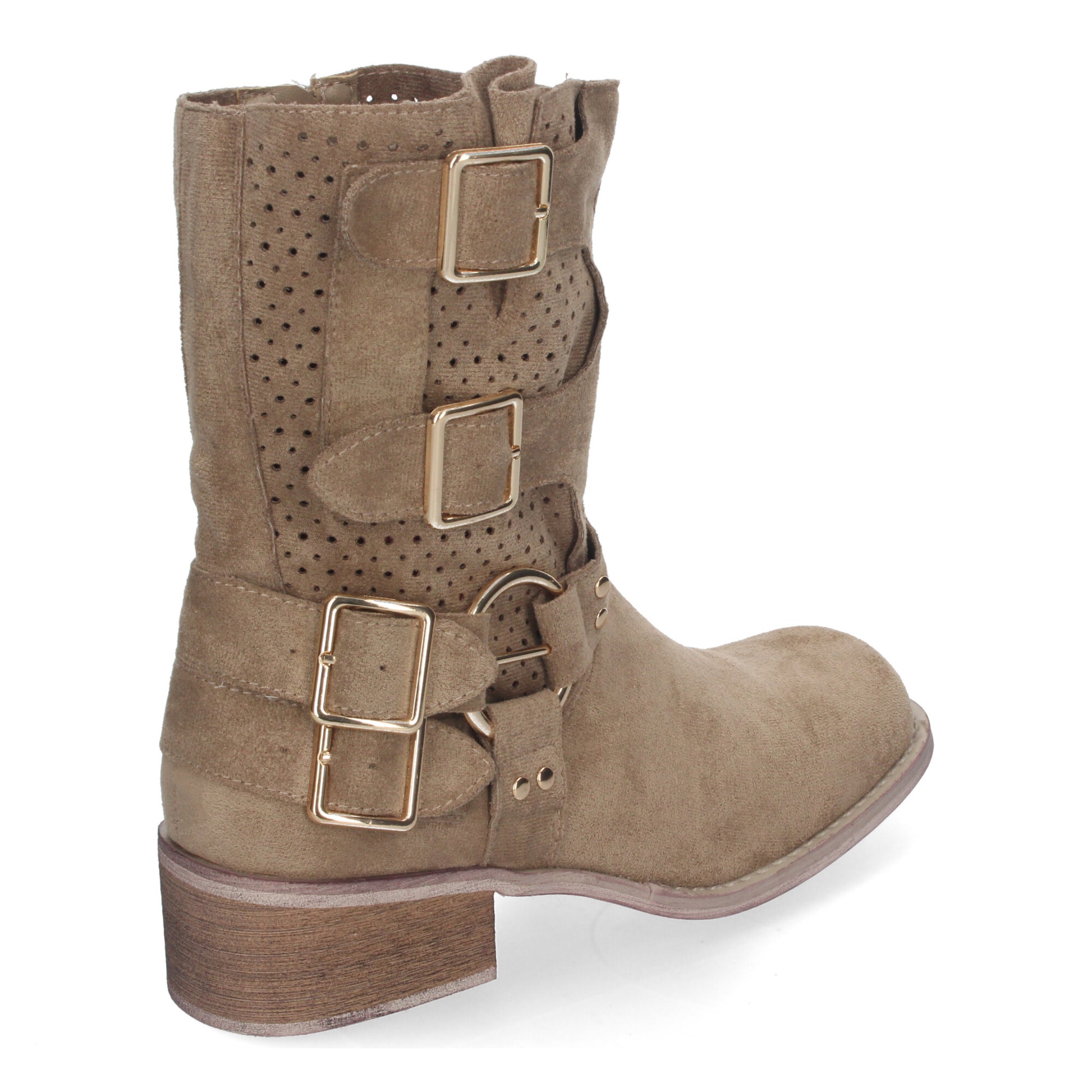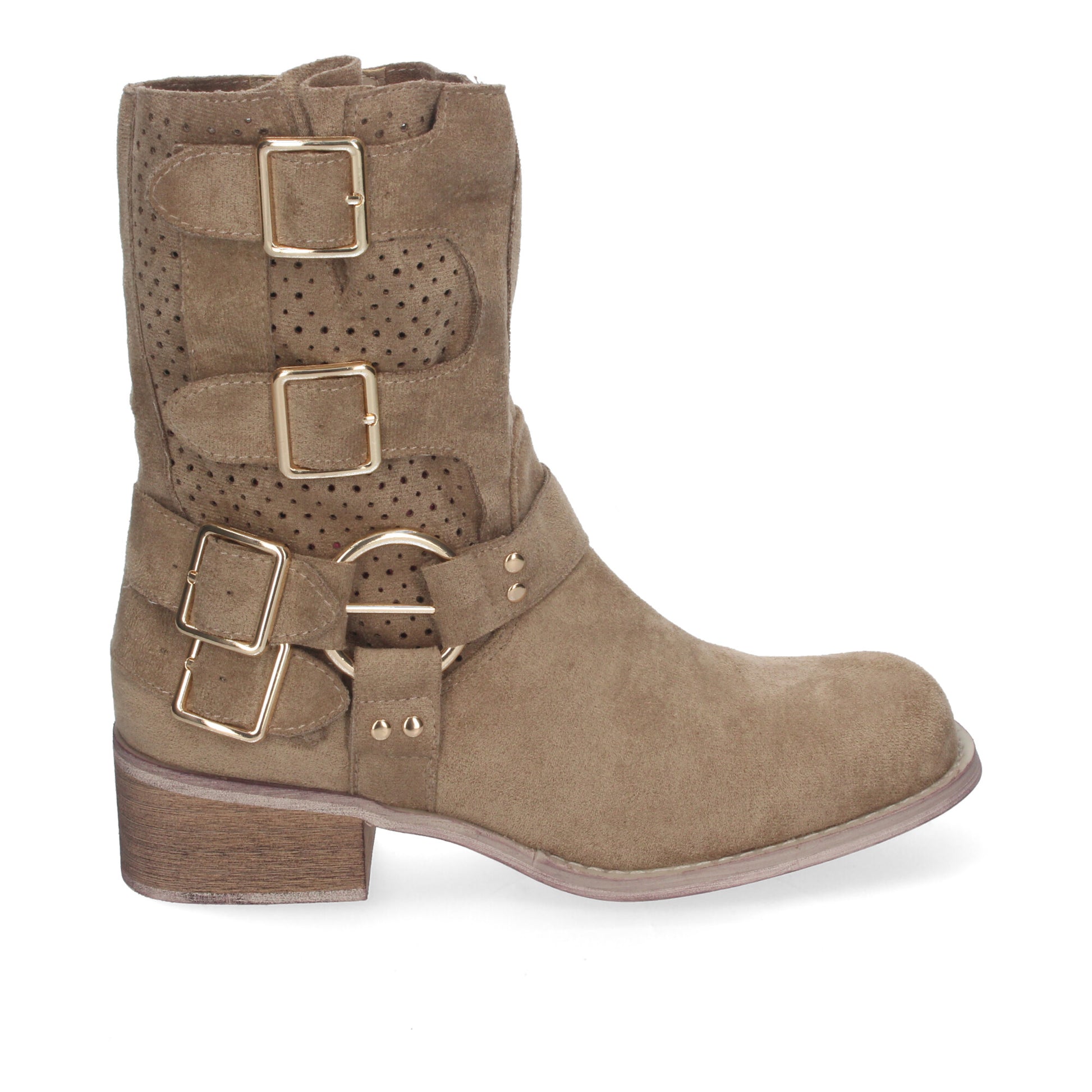 Botines de Mujer con Tacón Bajo y Adornos de Hebillas Caña Calada Cremallera Lateral Punta Redonda Perfectos para Toda Ocasión