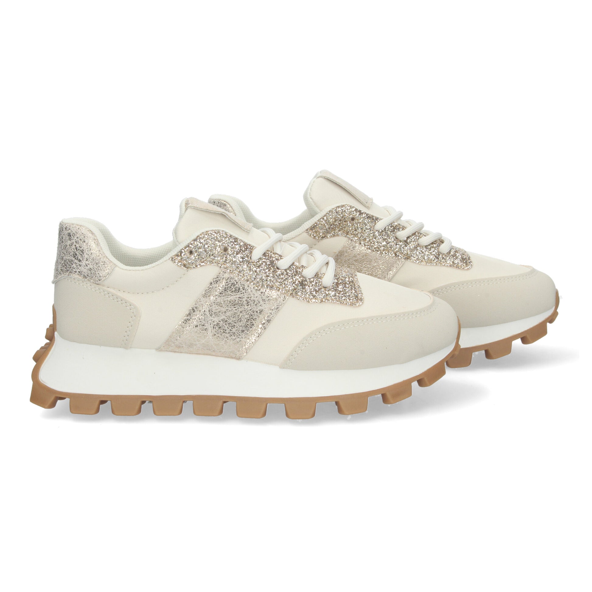 Zapatillas Deportivas Casual para Mujer Planas Cómodas con Adornos Brillantes Suela Dentada y Cierre de Cordones.