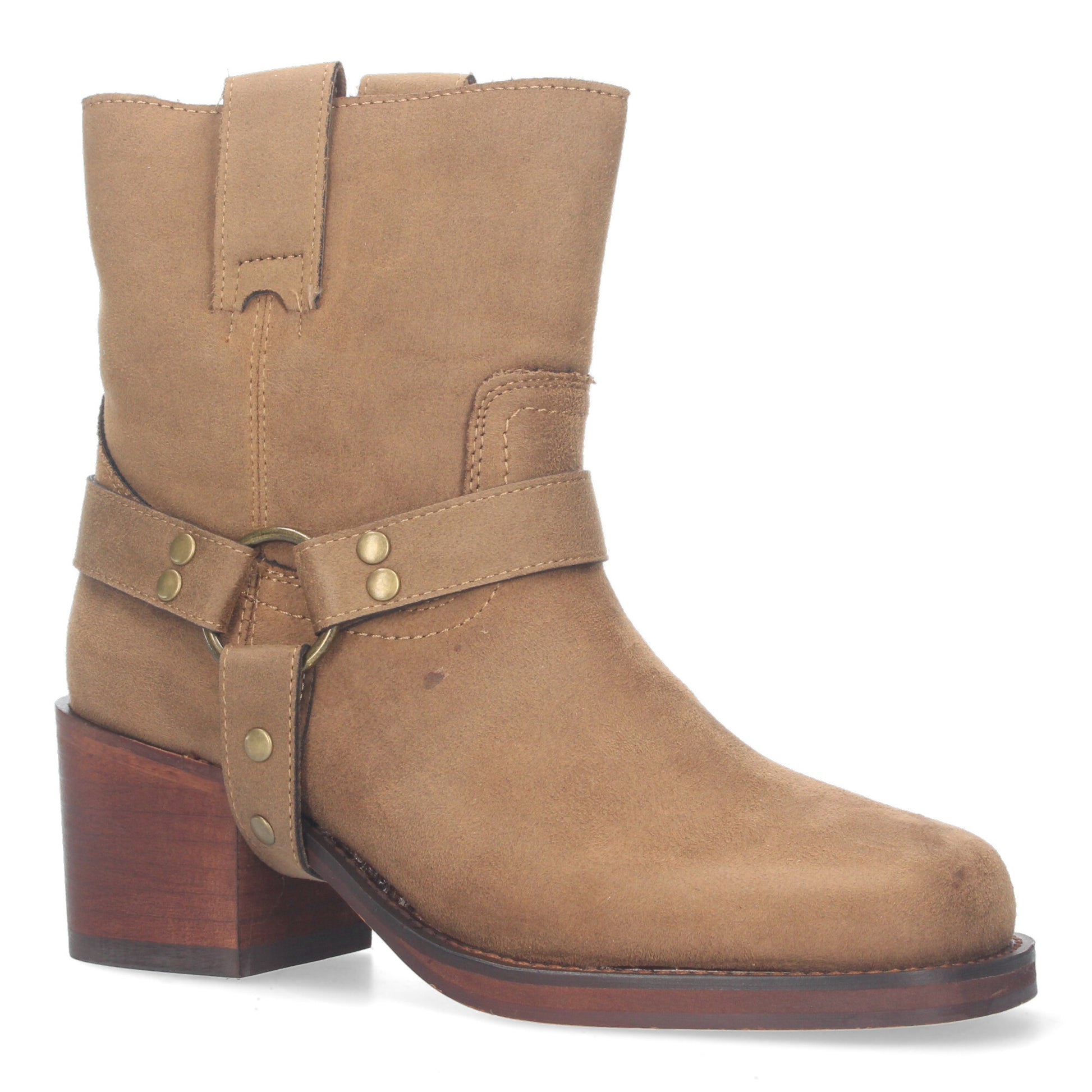 Botin de tacon para mujer material aterciopelado y con adorno en la caña y suela.