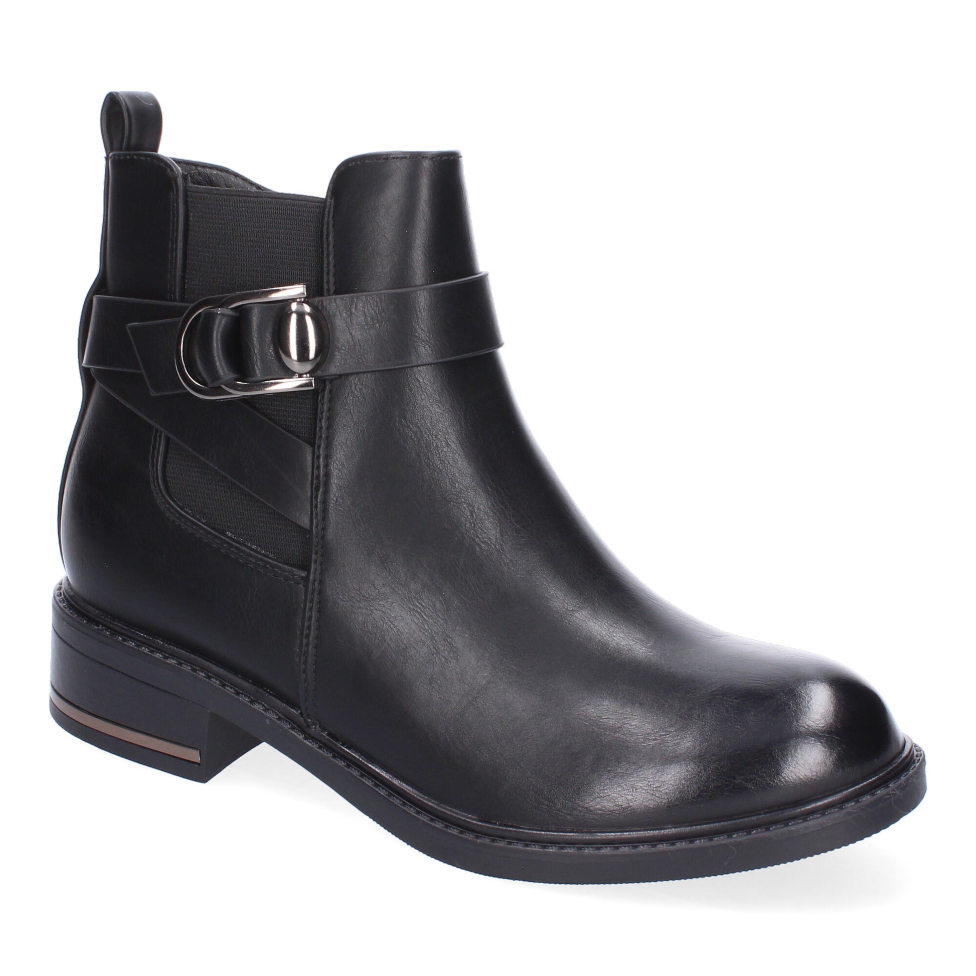 Botines de Mujer Comodos y Elegantes con Detalle de Hebilla Material Elástico Punta Redonda y Cierre de Cremallera Lateral Ideales para Otoño-Invierno.