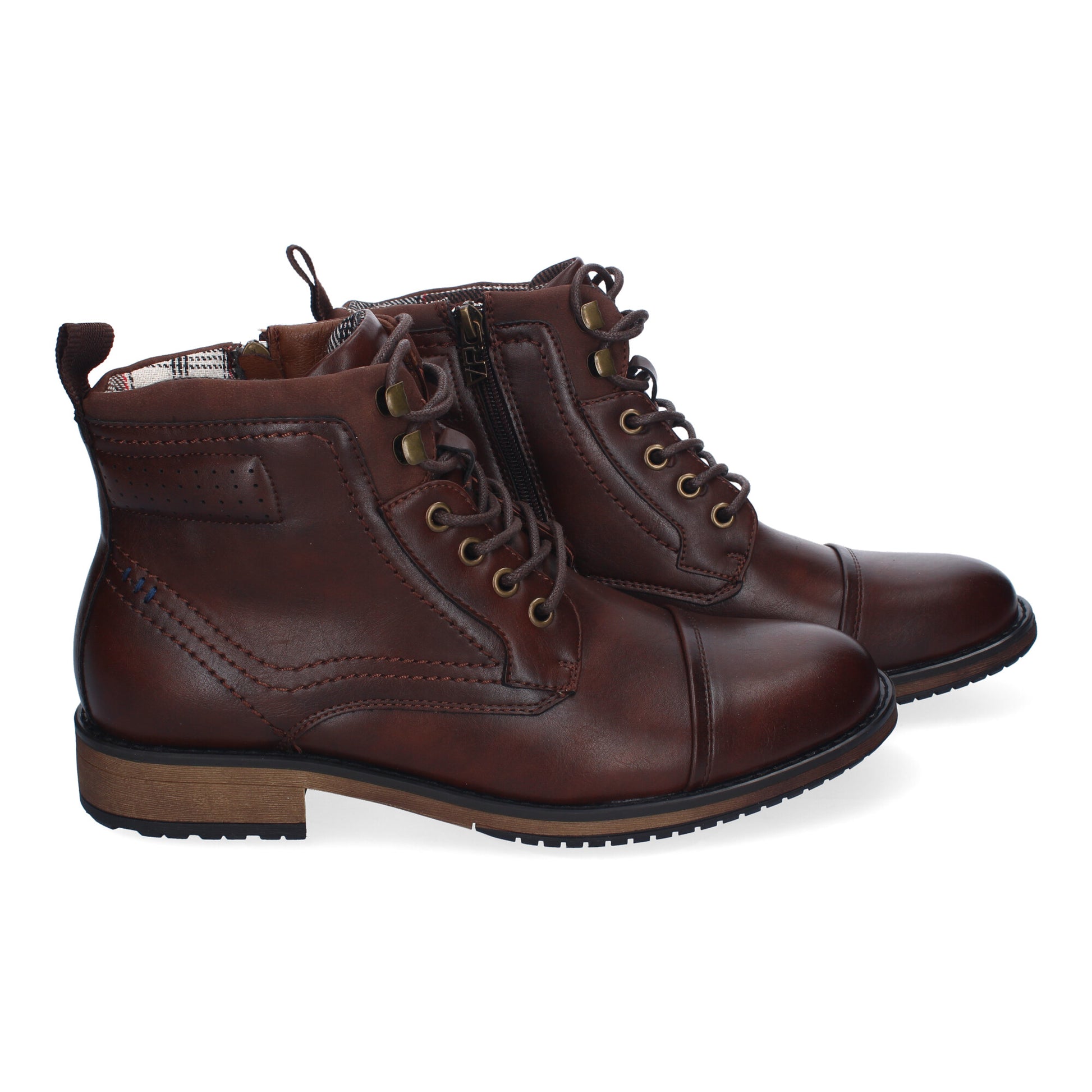 Botines de Hombre Comodos y Elegantes Diseño Clasico con Punta Redonda Adornos de Costuras Cierre de Cordones y Cremallera Lateral.
