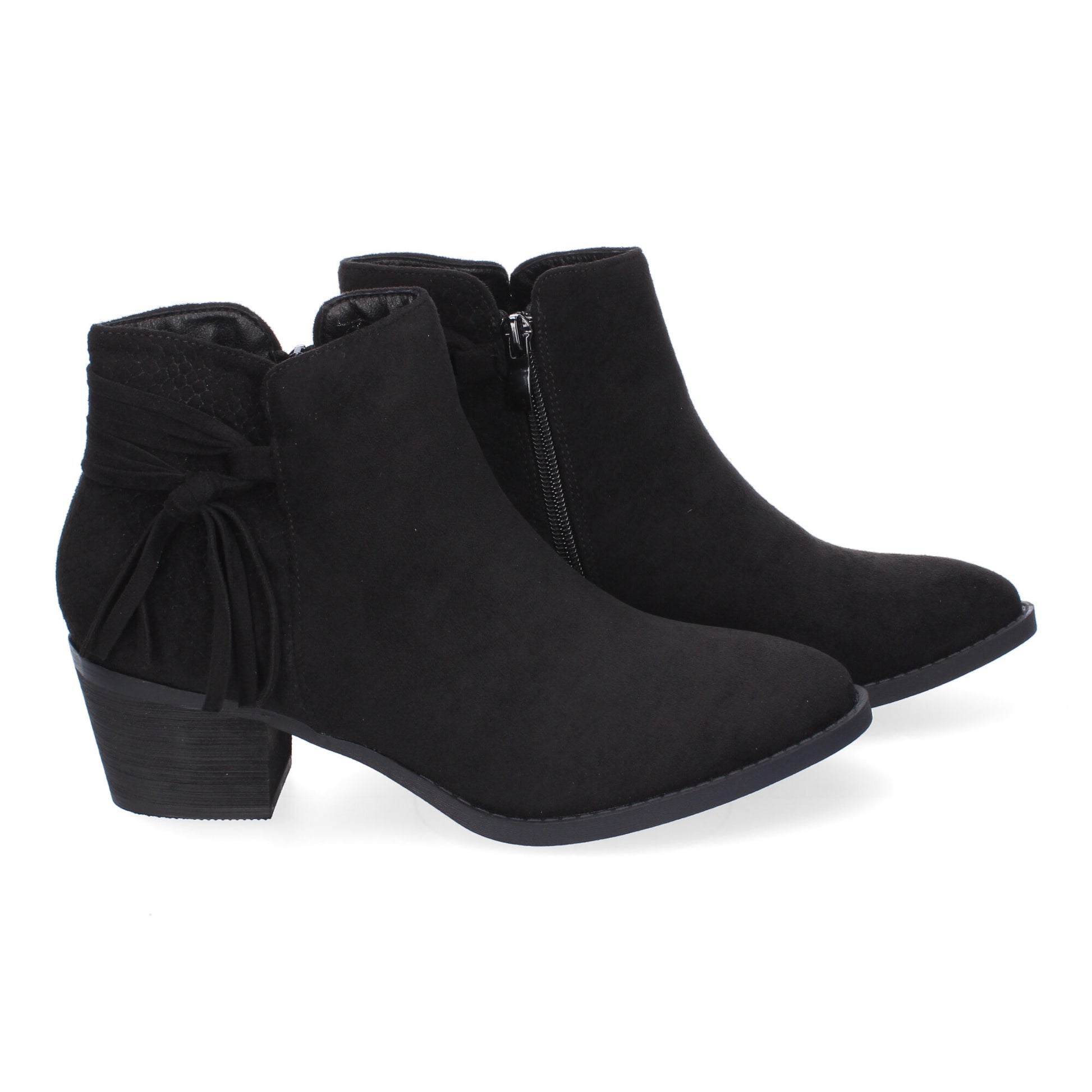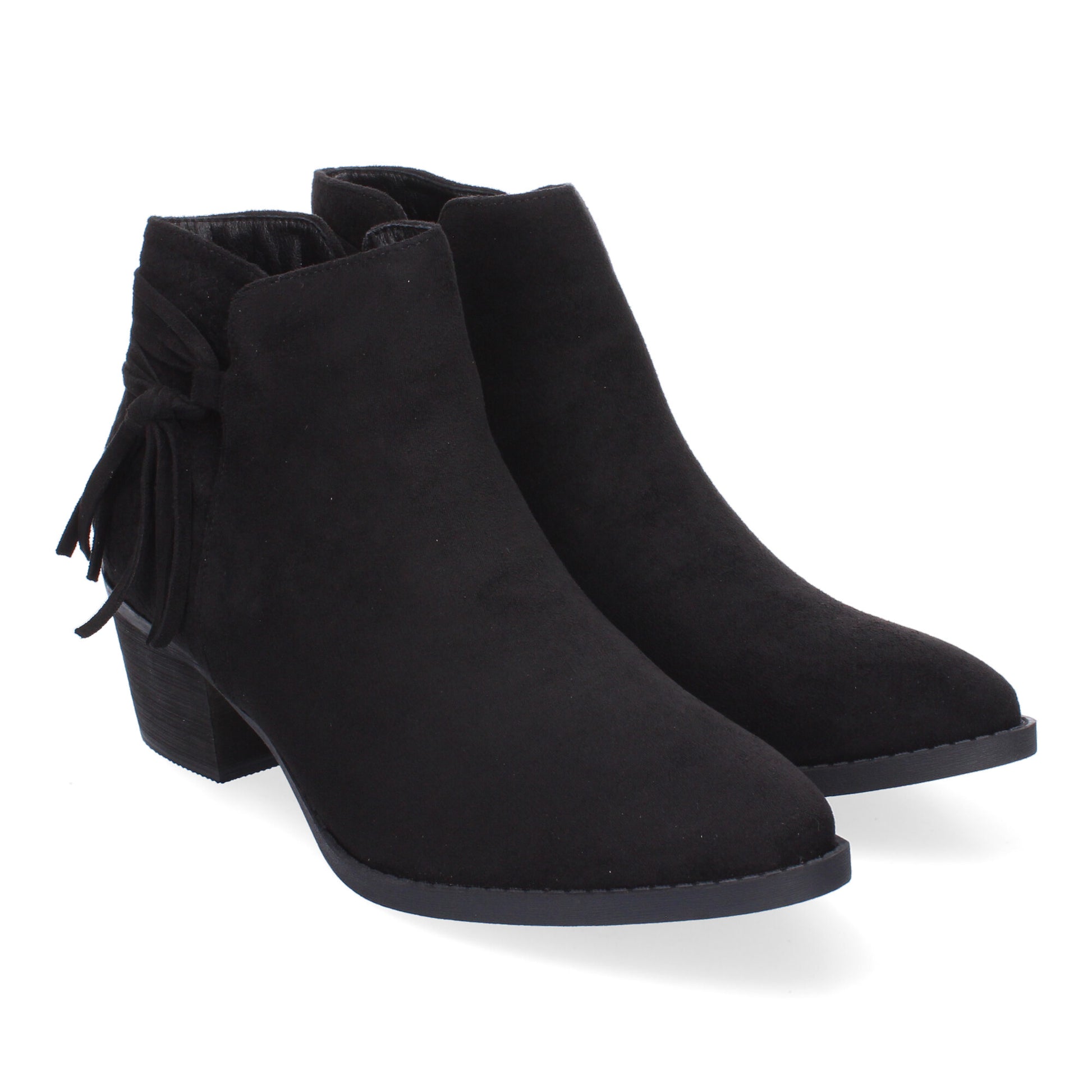 Botines de Tacón para Mujer Comodos y Elegantes con Detalle de Flecos Punta Redonda y Cierre de Cremallera Lateral Ideales para Otoño-Invierno.