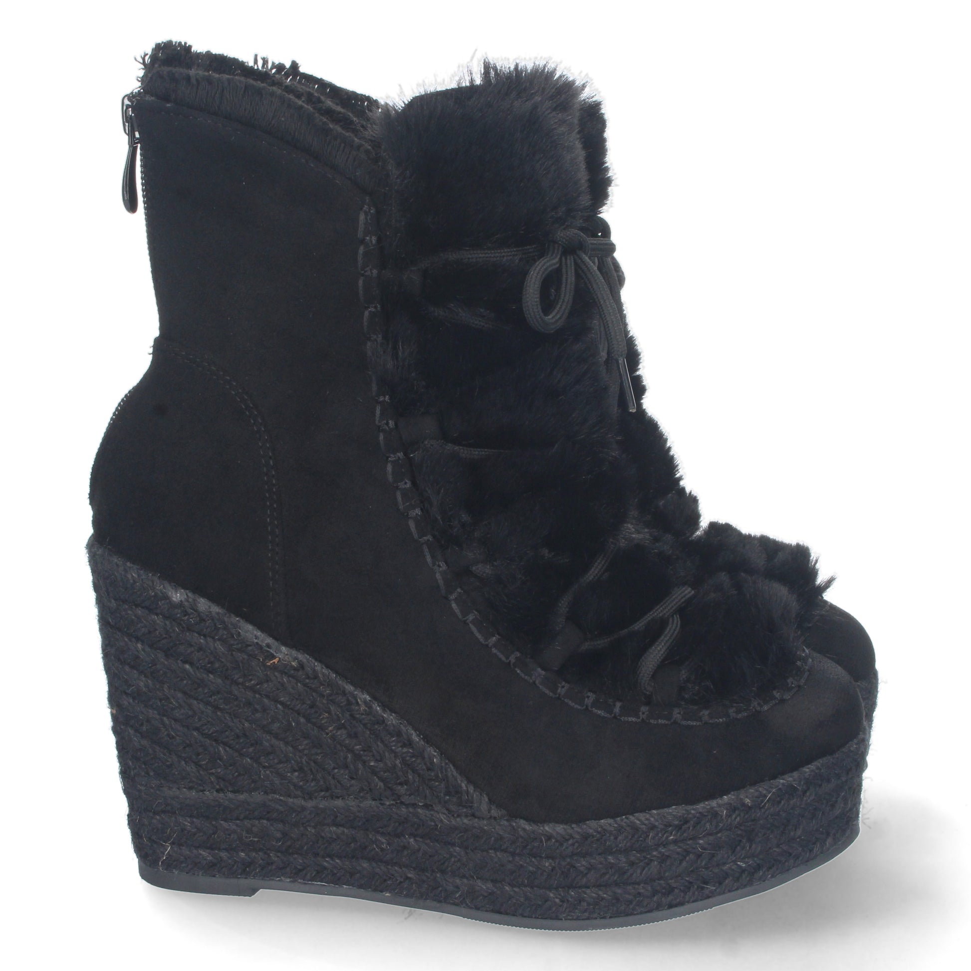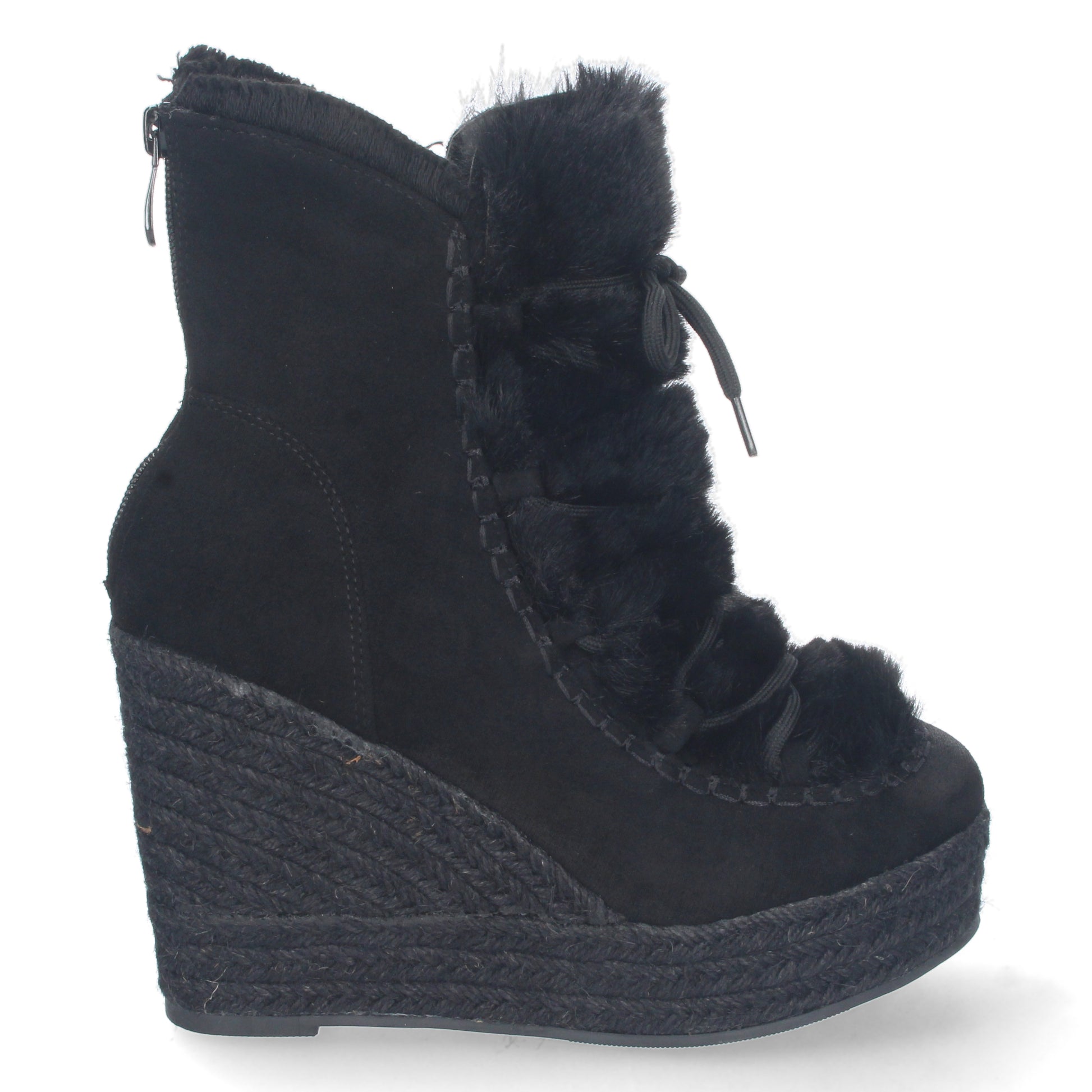 Botin de Cuña para Mujer Forrado de Yute Estampado Liso Pelo en el Empeine y Cierre de Cremallera Otoño Invierno 2022