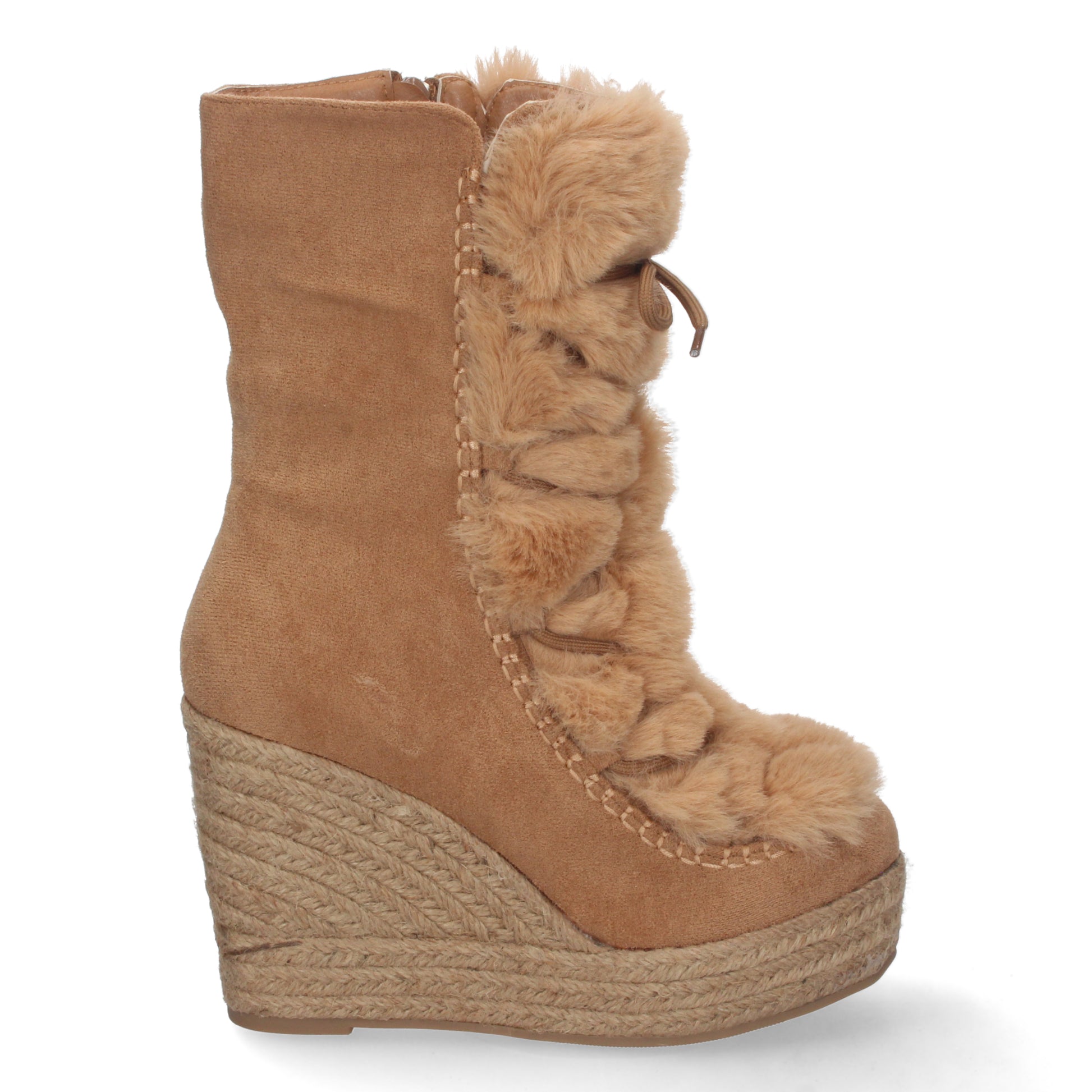 Bota de Cuña para Mujer Forrado de Yute Estampado Liso Pelo en el Empeine y Cierre de Cremallera Otoño Invierno 2022