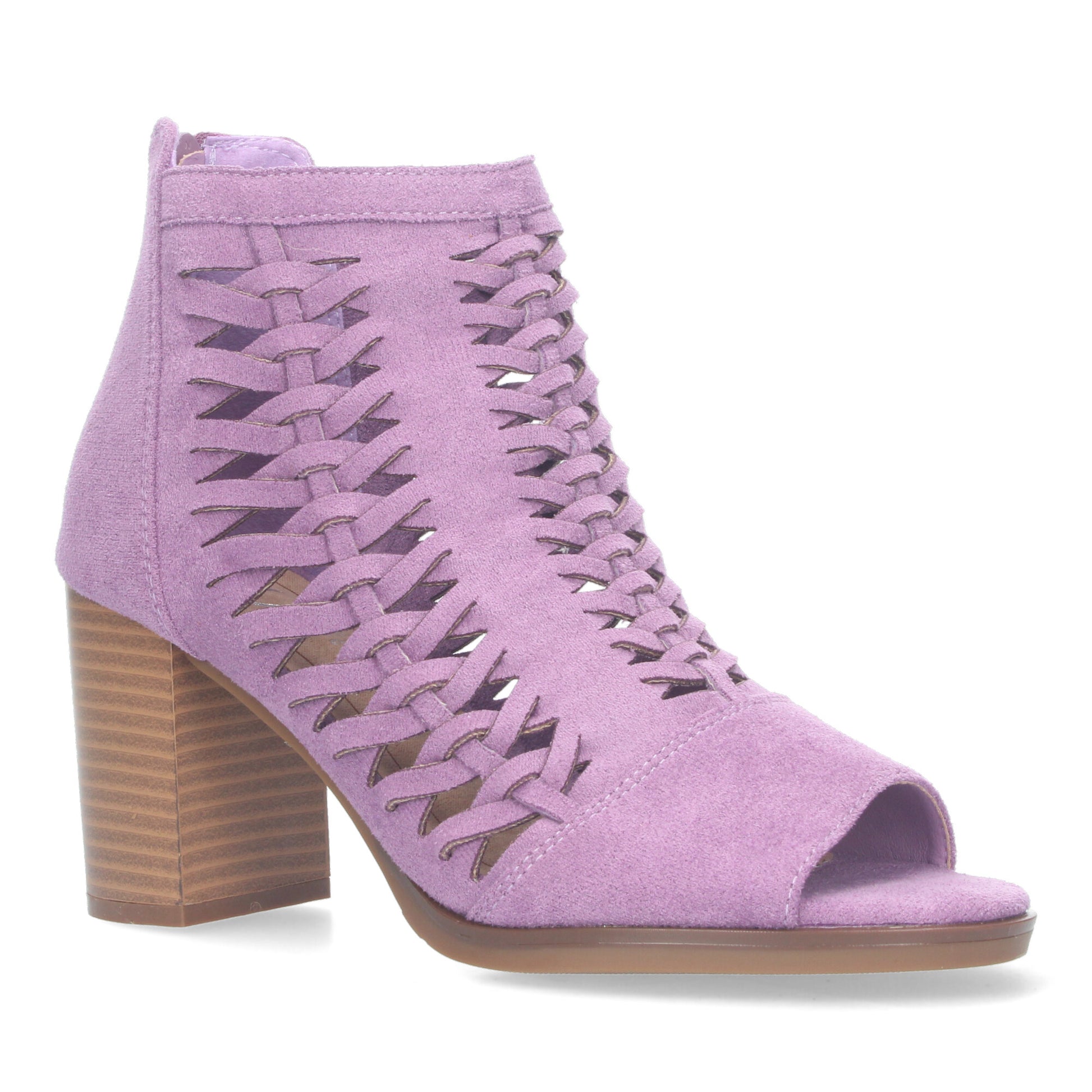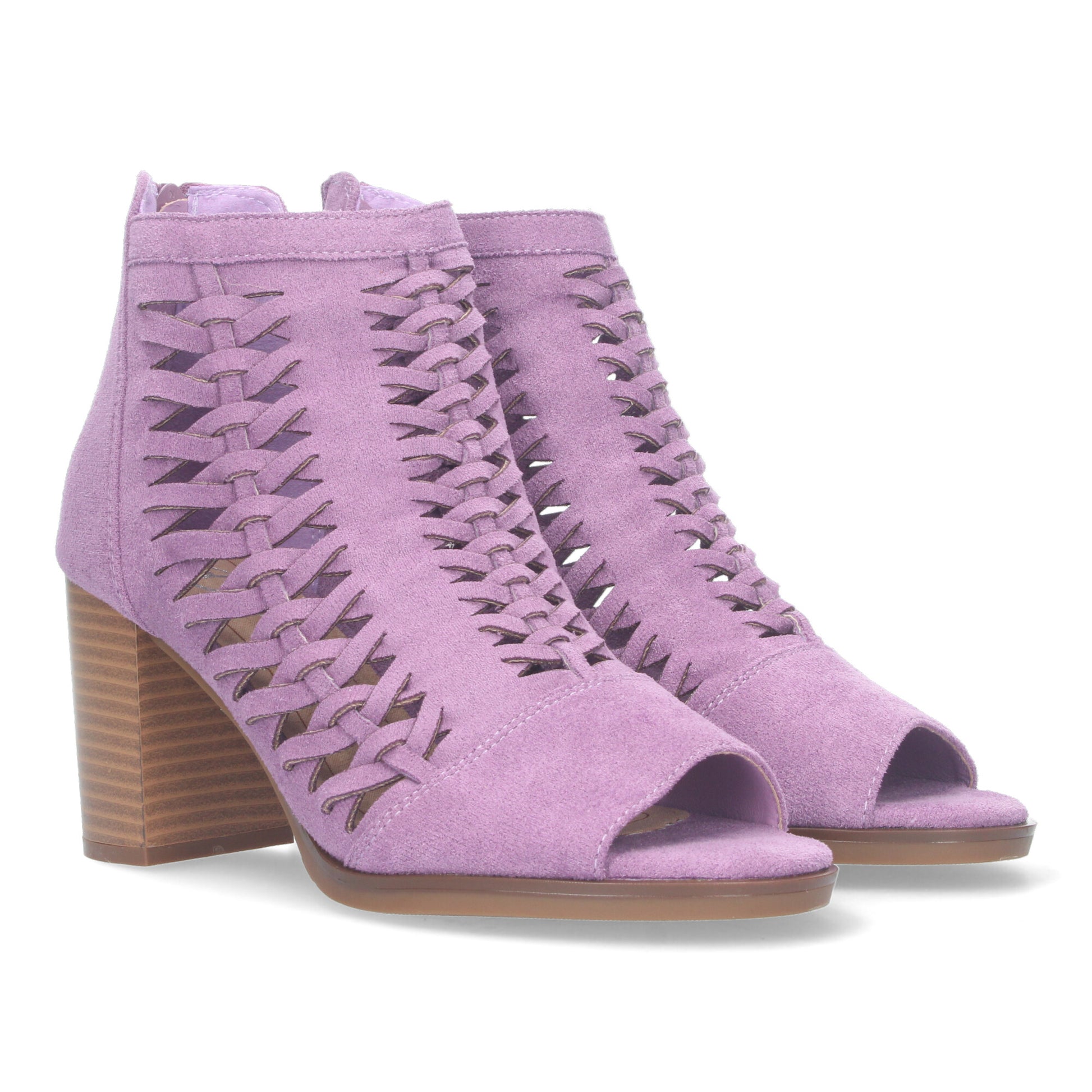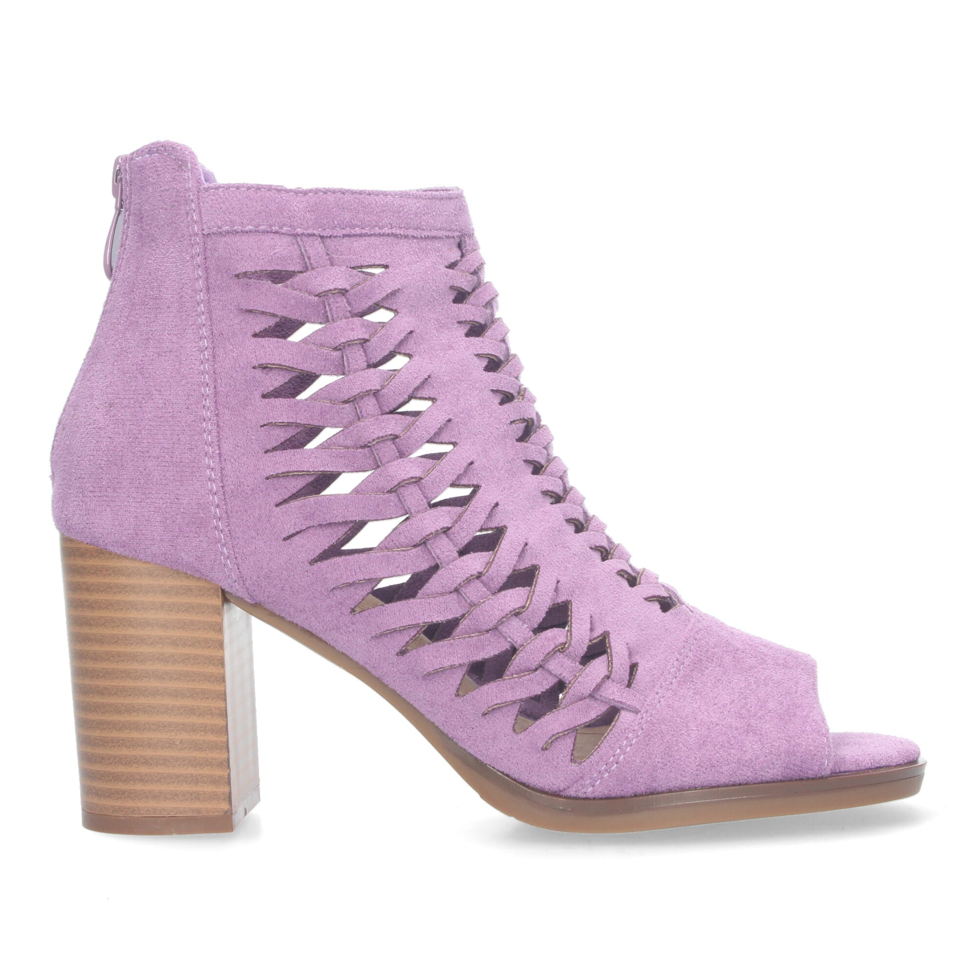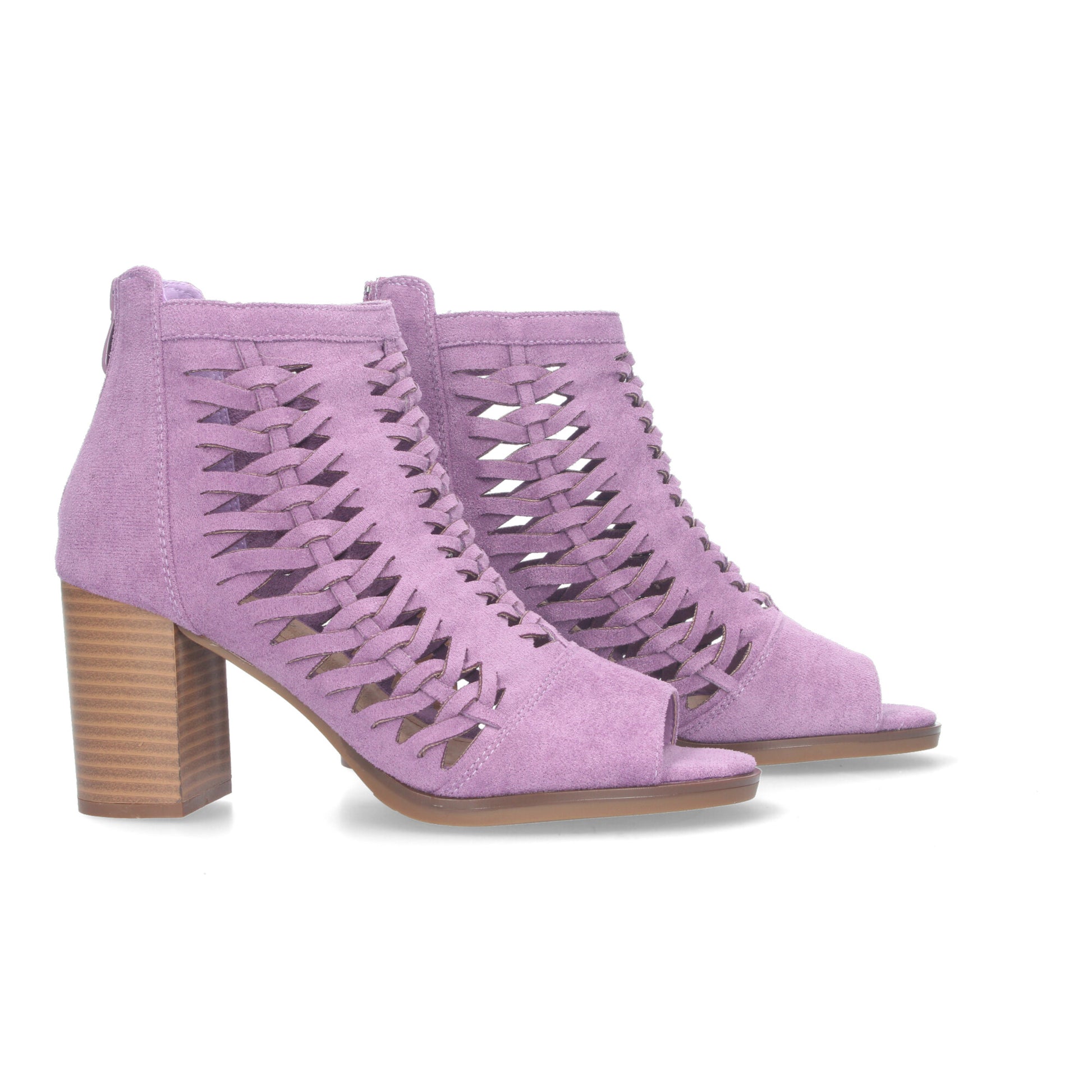 Botín de Tacon para Mujer con Tiras Trenzadas de Punta Abierta Cierre de Cremallera Cómodos.