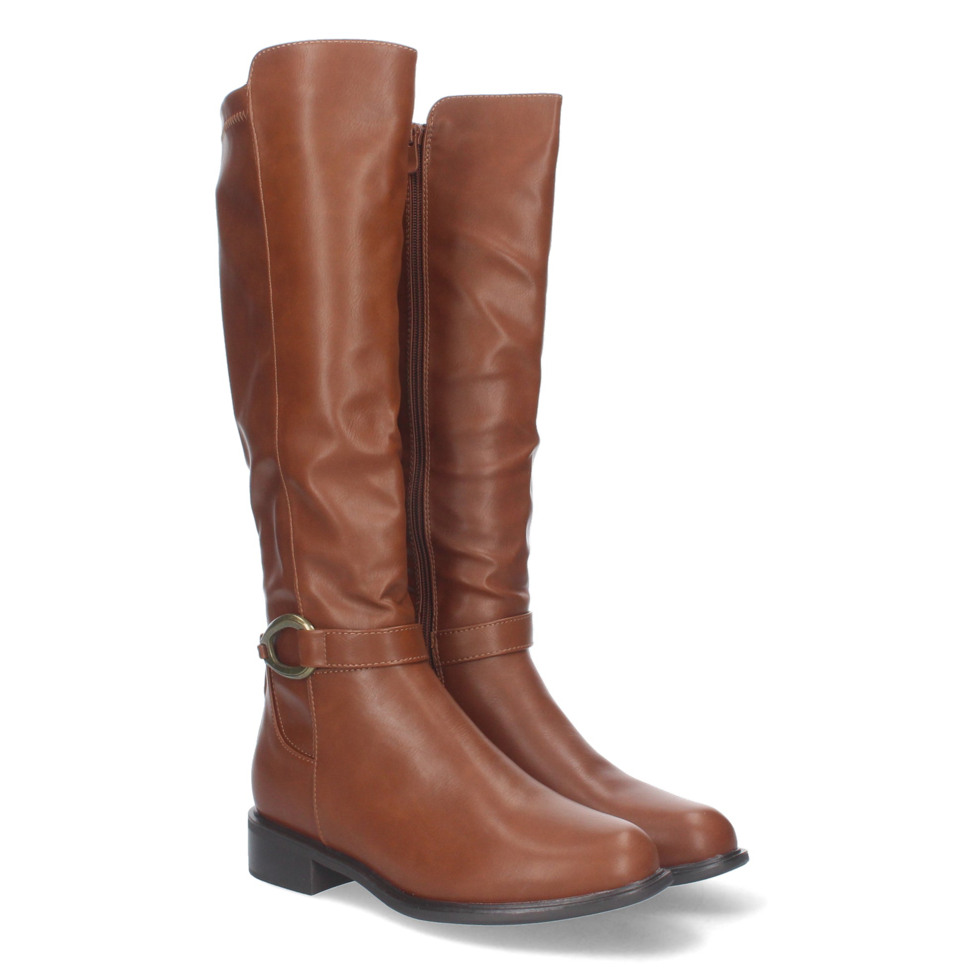 Bota Lisa de Tacón Bajo con Cierre de Cremallera y Adorno de Hebilla en el Talón. Caña de 38'5cm. Ideales para Otoño e Invierno