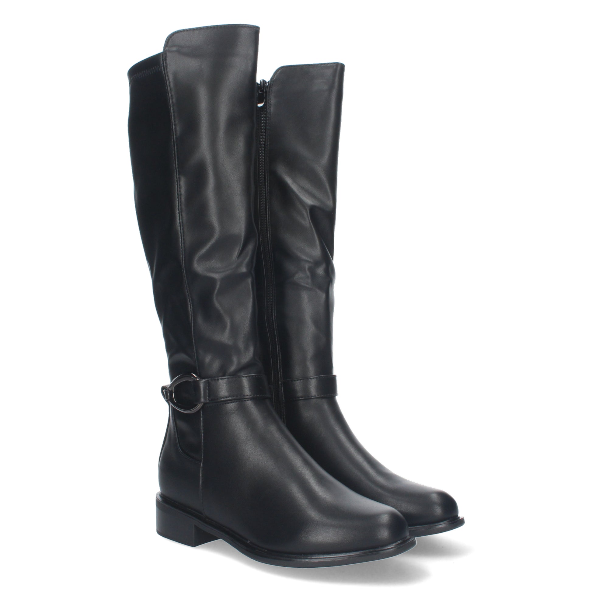 Bota Lisa de Tacón Bajo con Cierre de Cremallera y Adorno de Hebilla en el Talón. Caña de 38'5cm. Ideales para Otoño e Invierno