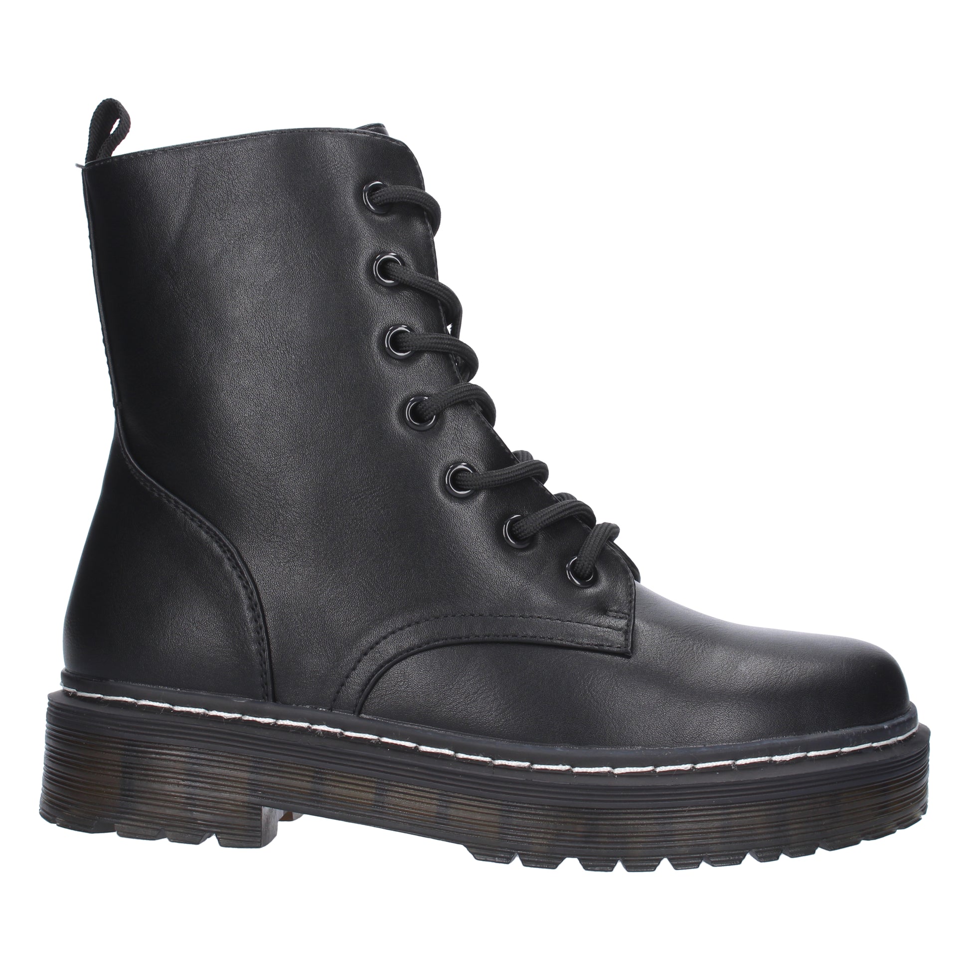 Botin de Tacon Ancho para Mujer Comodo con Estampado Liso y Cierre de Cremallera.